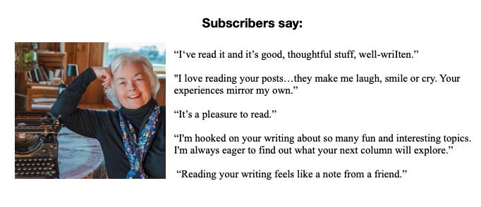I want the world to be a better place; my guess is that you do, too. We could learn a lot from one another. So whether you are a free or paid subscriber, thank you. I am profoundly grateful that you are willing to come along with me on this journey.
