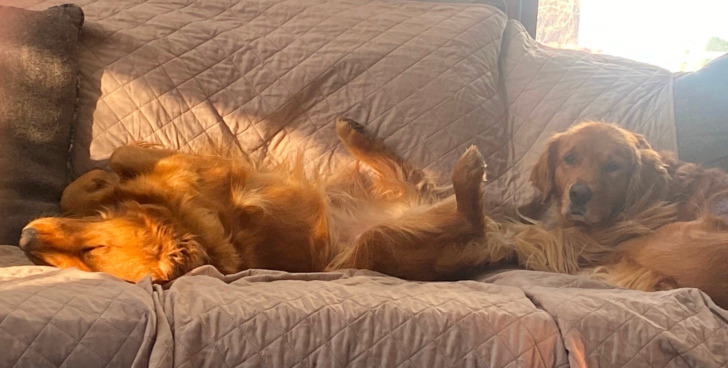 I am told that if you live with two golden retrievers, this is probably your situation: